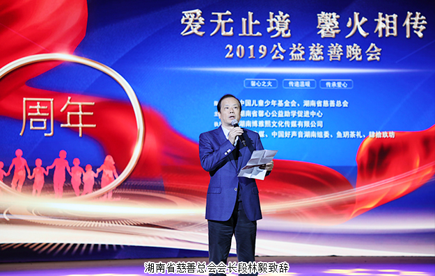 晚會(huì)伊始,湖南省慈善總會(huì)會(huì)長(zhǎng)段林毅致辭。他首先對(duì)長(zhǎng)期關(guān)心支持湖南慈善公益事業(yè)發(fā)展的各位領(lǐng)導(dǎo)、企業(yè)家朋友表示衷心的感謝和崇高的敬意。多年來慈善總會(huì)匯聚全省的愛心力量,嚴(yán)格落實(shí)省委省政府打好脫貧攻堅(jiān)戰(zhàn)的戰(zhàn)略部署,聚焦扶貧攻堅(jiān),聚焦特殊群眾 ,堅(jiān)持慈善厚德,努力做好慈善捐助、慈善救助的工作。2019年,全省各級(jí)慈善機(jī)構(gòu)共募集愛心款物超15億元,先后幫助困難群眾達(dá)600多萬人次。慈善公益事業(yè)是一項(xiàng)偉大的事業(yè),將與時(shí)代發(fā)展同頻共振,需要社會(huì)各界大力的參與和支持。他呼吁,全省廣大公益組織、企業(yè)界愛心朋友、社會(huì)愛心人士能更加踴躍積極投身到公益事業(yè)中,匯聚湖南力量,創(chuàng)造湖南慈善事業(yè)新成就,為打好脫貧攻堅(jiān)戰(zhàn)、全面建成小康社會(huì),實(shí)現(xiàn)中華民族偉大復(fù)興的中國夢(mèng)貢獻(xiàn)力量。