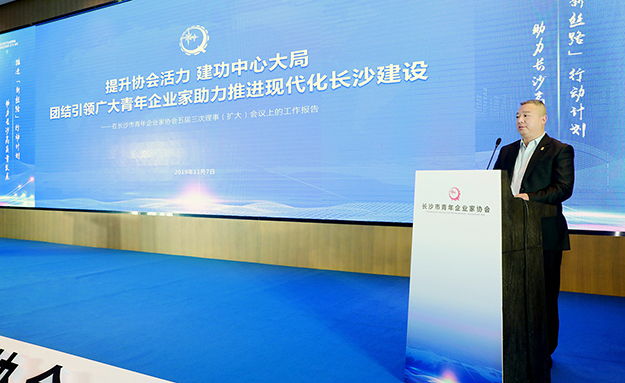 2019年11月7日,長沙市青年企業(yè)家協(xié)會五屆三次理事(擴(kuò)大)會議召開。共青團(tuán)長沙市委書記、黨組書記葉妙,黨組成員、副書記趙雪峰,副書記(掛職)劉飛米,市青企協(xié)負(fù)責(zé)同志、相關(guān)部門領(lǐng)導(dǎo)、各界特邀人士、200多名青年企業(yè)家會員參加會議。長沙市青企協(xié)常務(wù)副會長、綠之韻集團(tuán)副總裁胡均安出席會議,并作工作報告。