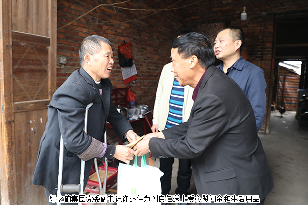 車剛到達(dá)巷子附近,拄著雙拐的劉良仁已經(jīng)在門口等著了。劉良仁因病雙腿骨頭壞死,不能正常行走、久坐和久站,他的妻子也有嚴(yán)重的腰椎盤突出,夫妻兩人都沒有勞動(dòng)能力。家中三個(gè)女兒大的14歲,小的10歲,都還在讀書。因病因?qū)W致貧,又沒有勞動(dòng)力,成為了家里久久不能脫貧的主要原因。劉良仁家中還是很早年建的紅磚房,連家具都沒有幾樣,廚房里現(xiàn)在還用蜂窩煤灶臺(tái),他笑著跟許達(dá)仲副書記說盡量降低生活成本,娃要讀書,他和妻子身體還不好。此次瀏陽市公安局經(jīng)偵大隊(duì)大隊(duì)長蔣騫、副隊(duì)長李偉與綠之韻集團(tuán)黨委副書記許達(dá)仲等一行為劉良仁送來了愛心慰問金和健康生活產(chǎn)品。