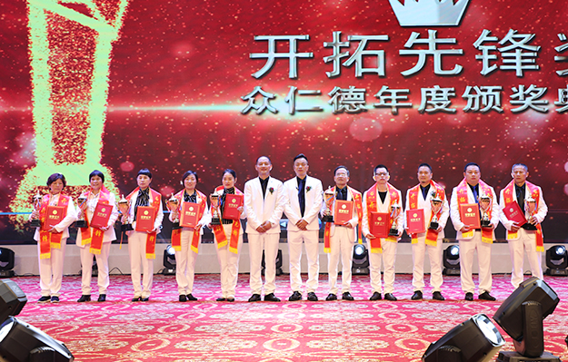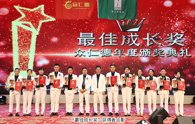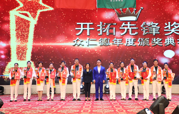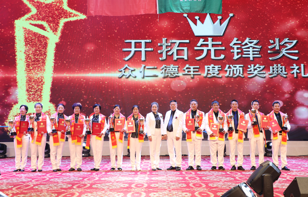 大會還舉行了盛大的頒獎儀式,為取得優(yōu)異成績的市場精英予以表彰?!伴_拓先鋒獎”“創(chuàng)業(yè)明星獎”“最佳成長獎”“特殊貢獻獎”“卓越領(lǐng)袖獎”等獎項依次頒發(fā)。綠之韻集團副總經(jīng)理梅其慧、市場管理中心業(yè)務(wù)總經(jīng)理曹兵、市場管理中心業(yè)務(wù)總監(jiān)譚紅和綠之韻眾仁徳系統(tǒng)創(chuàng)始人孟鈺潔與眾仁徳優(yōu)秀領(lǐng)導(dǎo)人上臺為獲獎的優(yōu)秀精英頒獎并送上祝福。