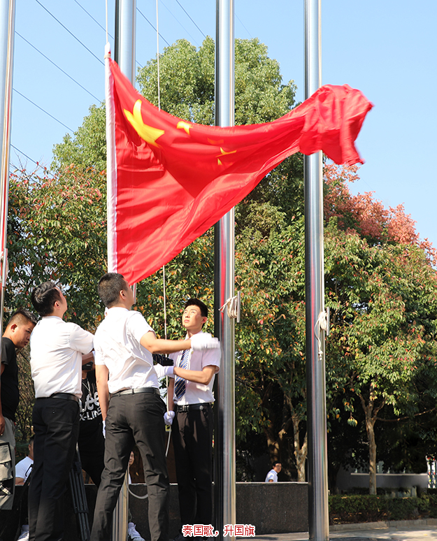 上午9點整,在莊嚴的氣氛中,護旗手邁著矯健的步伐來到國旗臺下。雄壯的國歌響起,護旗手振臂一揮,鮮艷的五星紅旗冉冉升起、迎風飄揚,綠之韻全體員工肅穆而立,滿懷崇敬之情向國旗行注目禮,送上了對祖國最美好的祝福。