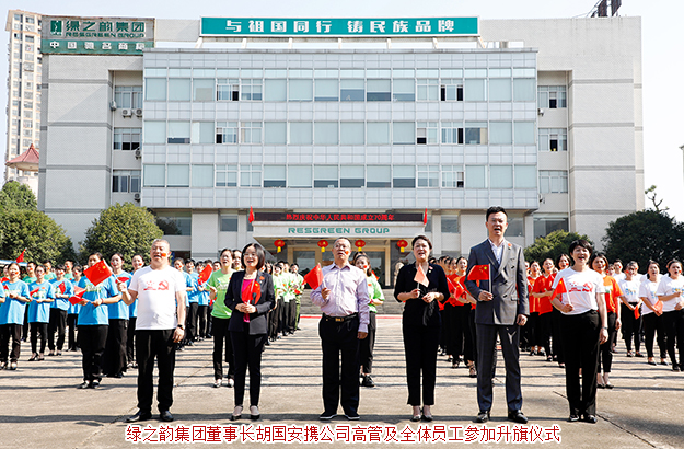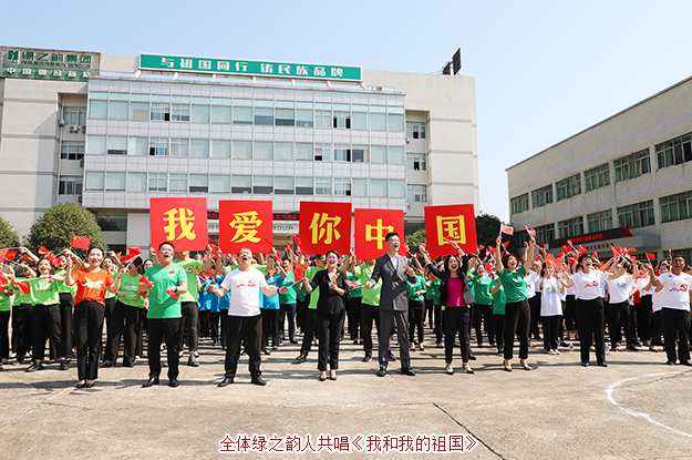 為慶祝新中國成立70周年,2019年9月29日,綠之韻集團舉行國慶升旗儀式暨拉紅歌大賽,共同祝愿我們偉大的祖國繁榮昌盛、安定富強。綠之韻集團董事長胡國安、董事總裁勞嘉攜公司高管及全體員工參加活動。