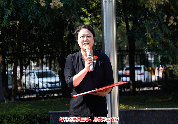 凝聚愛國情,共筑中國夢。綠之韻集團董事、總裁勞嘉在國旗下莊嚴表示,70年風雨兼程見證祖國滄桑巨變,中華民族迎來了從站起來、富起來到強起來的偉大飛躍。此次升旗儀式既是一次生動的愛國主義教育,也是公司凝心聚力激發(fā)員工愛國、愛企、愛崗情懷的重要活動,更是弘揚愛國精神、傳承優(yōu)良傳統(tǒng)的重要載體。值此新中國成立70周年,我們在這里隆重集會,舉行升國旗儀式,唱響革命紅歌,以這種莊嚴神圣的方式銘記歷史、共賀國慶!十六年來,綠之韻始終把自身發(fā)展統(tǒng)一到國家戰(zhàn)略的恢弘布局中,充分發(fā)揮綠色大健康全產(chǎn)業(yè)鏈優(yōu)勢,助力中醫(yī)藥、健康中國和“一帶一路”倡議發(fā)展,在各方面均取得了一定的成績。這些成績的取得,得益于所有綠之韻人的辛勞和付出,得益于這個最偉大的創(chuàng)業(yè)新時代。揮別波瀾壯闊的70年,展望承載著民族復興中國夢的下一個70年!未來,希望全體員工能夠不忘初心,牢記使命,繼承和發(fā)揚革命光榮傳統(tǒng),以諄諄愛國之情和拳拳報國之心,立足本職、精益求精、勇于擔當、同心共創(chuàng),繼續(xù)為實現(xiàn)“綠之韻夢、中國夢”而努力奮斗!