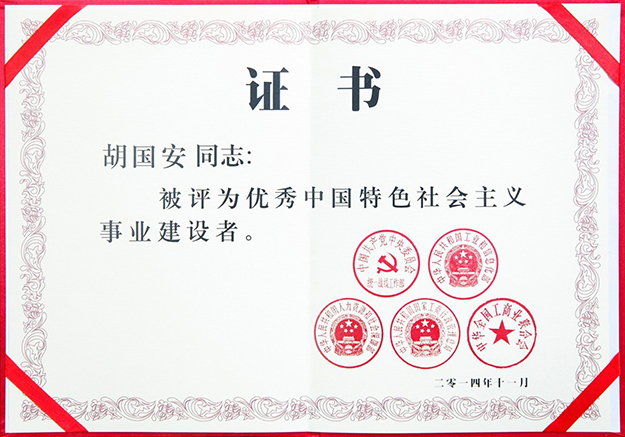“第四屆全國優(yōu)秀中國特色社會(huì)主義事業(yè)建設(shè)者”胡國安董事長(zhǎng)