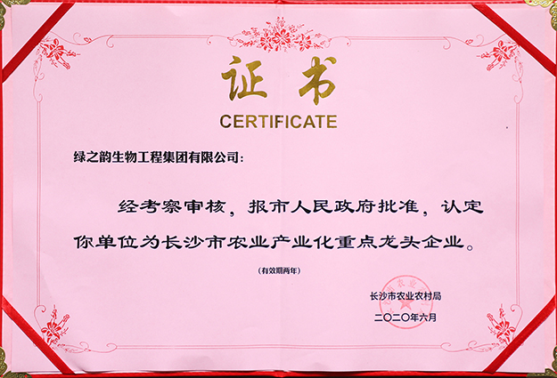 近日,長沙市農(nóng)業(yè)農(nóng)村局下發(fā)《關(guān)于認(rèn)定長沙市農(nóng)業(yè)產(chǎn)業(yè)化重點龍頭企業(yè)的通知》,經(jīng)考察審核,報長沙市人民政府批準(zhǔn),綠之韻集團(tuán)等76家企業(yè)被認(rèn)定為“長沙市農(nóng)業(yè)產(chǎn)業(yè)化重點龍頭企業(yè)”。