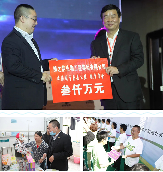 十七年來(lái),綠之韻在胡國(guó)安董事長(zhǎng)帶領(lǐng)下,在發(fā)展實(shí)業(yè)的同時(shí),積極承擔(dān)社會(huì)責(zé)任,產(chǎn)業(yè)富民、回饋社會(huì),如:在全國(guó)各地先后援建了11所希望學(xué)校,陸續(xù)投入1000萬(wàn)元開(kāi)展“樹(shù)人行動(dòng)”,投入300萬(wàn)元在全國(guó)各地開(kāi)展“綠韻圓夢(mèng)·書(shū)香助學(xué)”活動(dòng),投入300萬(wàn)元用于全國(guó)貧困母親救助行動(dòng),捐贈(zèng)700萬(wàn)元為城鎮(zhèn)低保婦女提供“兩癌”免費(fèi)檢查服務(wù),向湖南省光彩事業(yè)基金會(huì)捐贈(zèng)3000萬(wàn)元促進(jìn)“老、少、邊、窮”地區(qū)的經(jīng)濟(jì)發(fā)展和社會(huì)進(jìn)步。