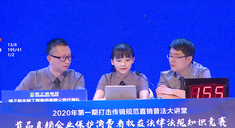 8月20日,根據(jù)國(guó)家市場(chǎng)監(jiān)督管理總局工作安排,由國(guó)家市場(chǎng)監(jiān)督管理總局規(guī)范直銷(xiāo)與打擊傳銷(xiāo)辦公室指導(dǎo)、中國(guó)消費(fèi)者報(bào)社承辦、重慶市市場(chǎng)監(jiān)督管理局協(xié)辦的2020年首期打傳規(guī)直普法大講堂宣傳活動(dòng)在重慶召開(kāi)。綠之韻集團(tuán)受邀參加本次會(huì)議,并組建知識(shí)競(jìng)賽代表隊(duì)參與“直銷(xiāo)企業(yè)保護(hù)消費(fèi)者權(quán)益法律法規(guī)知識(shí)競(jìng)賽”環(huán)節(jié),與其他 8 家直銷(xiāo)企業(yè)代表隊(duì)同臺(tái)競(jìng)技,展示行業(yè)整體積極風(fēng)貌。