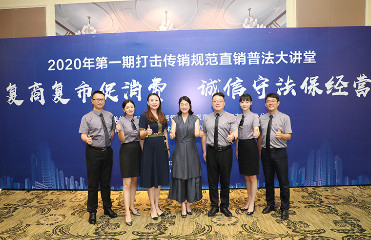 為扎實(shí)做好“六穩(wěn)”工作,全面落實(shí)“六?!比蝿?wù),8月20日,以“復(fù)商復(fù)市促消費(fèi) 誠(chéng)信守法保經(jīng)營(yíng)”為主題的2020年第一期打擊傳銷規(guī)范直銷普法大講堂活動(dòng)在重慶市舉辦。本次普法宣傳活動(dòng)由國(guó)家市場(chǎng)監(jiān)督管理總局規(guī)范直銷與打擊傳銷辦公室指導(dǎo),中國(guó)消費(fèi)者報(bào)社承辦、重慶市市場(chǎng)監(jiān)督管理局協(xié)辦。市場(chǎng)監(jiān)管總局規(guī)范直銷與打擊傳銷辦公室、中國(guó)消費(fèi)者報(bào)社、重慶市市場(chǎng)監(jiān)督管理局主要負(fù)責(zé)同志、重慶市渝北區(qū)人民政府有關(guān)負(fù)責(zé)同志參加了本次活動(dòng)。綠之韻集團(tuán)董事、總裁勞嘉受邀參加活動(dòng)并接受了采訪,綠之韻集團(tuán)市場(chǎng)管理中心業(yè)務(wù)總經(jīng)理曹兵帶領(lǐng)公司知識(shí)競(jìng)賽代表隊(duì)參加了本次普法宣傳活動(dòng)。