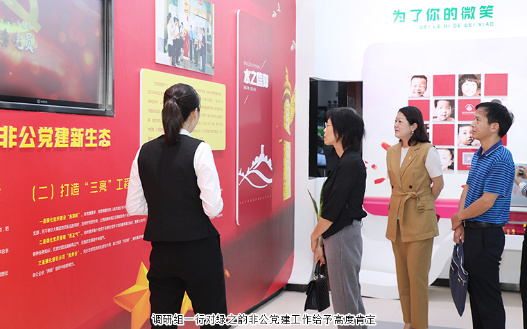 2020年9月16日,中共湖南省委統(tǒng)戰(zhàn)部宣傳信息處處長(zhǎng)李蓉、副處長(zhǎng)馮小明、一級(jí)主任科員符謙一行蒞臨綠之韻集團(tuán)調(diào)研指導(dǎo)。綠之韻集團(tuán)董事、總裁勞嘉,總裁助理蔣文陪同調(diào)研。