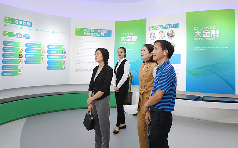調(diào)研組一行參觀了綠之韻國(guó)際會(huì)議中心形象展示廳。展廳以綠之韻“水的精神”為貫穿構(gòu)想,運(yùn)用現(xiàn)代化、科技化、智能化的創(chuàng)新技術(shù)手段,全方位、多角度生動(dòng)呈現(xiàn)了綠之韻十七年的發(fā)展歷程。綠之韻“以產(chǎn)品為導(dǎo)向”的發(fā)展理念、“水的精神和家文化”的企業(yè)特質(zhì)以及誠(chéng)實(shí)守信、產(chǎn)業(yè)富民、回饋社會(huì)的良好企業(yè)形象得到了調(diào)研組一行的肯定和贊譽(yù)。