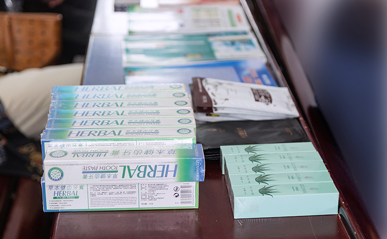 會(huì)場(chǎng)里,村民們認(rèn)真閱讀著手中的宣傳單頁,仔細(xì)尋找著問題的答案。搶答賽結(jié)束后,了解到村里尚有一些困難家庭尚未脫貧,湖南省婦聯(lián)一行為困難家庭發(fā)放了慰問金,綠之韻集團(tuán)副總經(jīng)理梅其慧、黨委書記劉云為村里的貧困戶送上了綠之韻健康產(chǎn)品,并詳細(xì)向村民們介紹了產(chǎn)品的用途與功效。