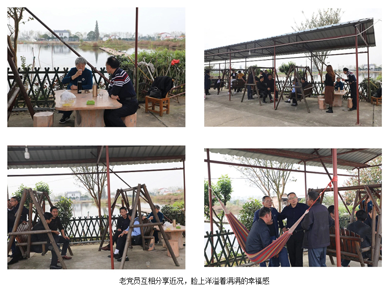 上午十時(shí)許,綠之韻黨團(tuán)成員驅(qū)車近2個(gè)小時(shí)來到湘陰縣鶴龍湖。在鶴龍湖邊的涼亭里,綠之韻黨團(tuán)成員與老黨員們?nèi)宄扇簢谝黄穑贿吅炔枰贿吢犂宵h員們分享自己過去的奮斗故事,并詳細(xì)詢問老黨員的生活情況和身體狀況,叮囑他們要好好保重身體。在了解了老黨員們?yōu)辄h的各項(xiàng)事業(yè)做出的積極貢獻(xiàn)后,青年黨員紛紛表示要以老黨員們?yōu)榘駱?,學(xué)習(xí)他們的優(yōu)良傳統(tǒng)和作風(fēng),認(rèn)真做好本職工作,做時(shí)代的奉獻(xiàn)者,奮斗者。