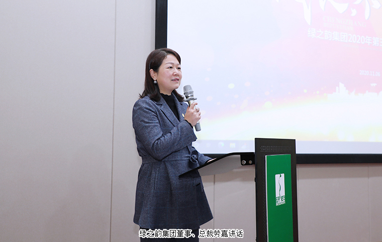隨后,綠之韻集團(tuán)董事、總裁勞嘉講話。她表示,今年是綠之韻成立十八周年,能夠一路走下來,并取得各項(xiàng)成績,得益于這些五年、十年獎項(xiàng)獲得者的相信、堅持和奉獻(xiàn),得益于在座各位高管和員工的不懈拼搏和辛勤付出。她從重塑崗位和職業(yè)價值、增強(qiáng)工作有效性、提升解決問題能力、提振未來發(fā)展信心等四個方面娓娓道來,語重心長。她強(qiáng)調(diào),綠之韻可以給到每一位員工發(fā)展的舞臺,只要我們沉下心來學(xué)習(xí),不斷創(chuàng)新工作模式,不斷提高每一個人解決實(shí)際問題的能力,當(dāng)我們足夠優(yōu)秀,我們就能在這里實(shí)現(xiàn)每一個人的自身價值。這次疫情雖然對我們的企業(yè)有一定的影響,但是從國家層面來看,隨著《“健康中國2030”規(guī)劃綱要》的發(fā)布,當(dāng)前“國民健康”的重視程度前所未有,給我們繼續(xù)投身大健康產(chǎn)業(yè)一劑“強(qiáng)心劑”。從公司層面來看,目前,公司各個市場板塊在調(diào)整和融合,向著好的方向發(fā)展。“勿忘昨天的苦難輝煌,無愧今天的使命擔(dān)當(dāng),不負(fù)明天的偉大夢想。”后疫情時代,明年或許會更艱難,但大家要對企業(yè)未來的發(fā)展充滿信心。希望可以看到更多的員工走上公司五年、十年的榮耀舞臺,肩負(fù)使命、創(chuàng)造輝煌,不負(fù)青春、不負(fù)遇見、不負(fù)夢想。