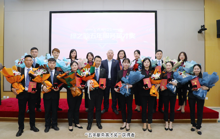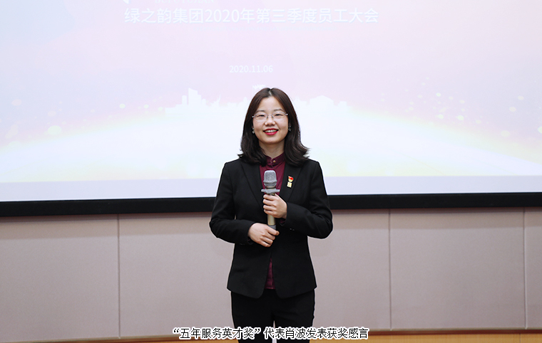 11月6日,綠之韻集團(tuán)2020年第三季度員工大會暨五年服務(wù)英才獎、十年服務(wù)忠誠獎頒發(fā)儀式成功舉行。綠之韻集團(tuán)董事長胡國安、董事總裁勞嘉攜集團(tuán)高管及全體員工參加會議。