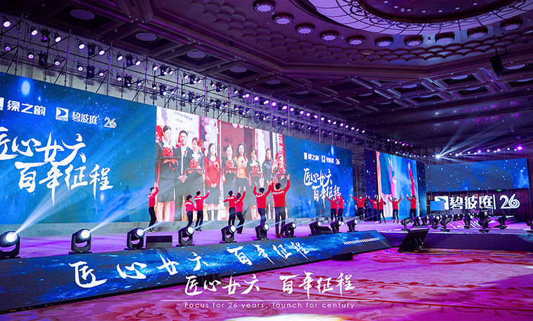 2020年12月18日,“匠心廿六·百年征程”綠之韻碧波庭26周年慶暨新品戰(zhàn)略發(fā)布會在長沙舉行。綠之韻集團董事、總裁勞嘉,總經理劉維利,副總裁胡均安,執(zhí)行總經理夏運良,副總經理梅其慧,黨委書記劉云,市場運營中心副總經理李定;綠之韻集團副總經理、綠之韻碧波庭總經理黃莎莎,綠之韻碧波庭創(chuàng)始人劉時達、李水蓮伉儷與來自全國各地的3000余名綠之韻家人匯聚一堂,共襄盛舉。