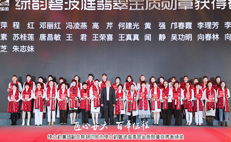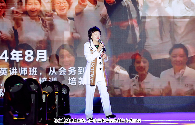 隨后,綠之韻碧波庭創(chuàng)始人李水蓮上臺分享了碧波庭品牌創(chuàng)立26年的心路歷程,并為綠之韻碧波庭2021年度品牌文化傳承委員會授證。百位總監(jiān)共同上臺齊聲獻唱歌曲《追夢赤子心》。