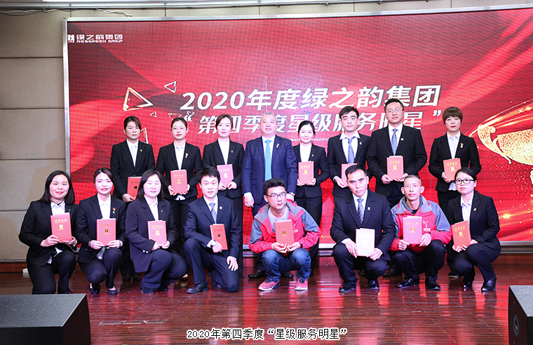 青春如熾,破曉當(dāng)歌。在此次年度員工總結(jié)表彰大會(huì)上,公司頒發(fā)了2020年第四季度“星級(jí)服務(wù)明星”、2020年度綠之韻集團(tuán)黨委“先進(jìn)基層黨組織”“優(yōu)秀黨務(wù)工作者”和“優(yōu)秀共產(chǎn)黨員”、“服務(wù)能手獎(jiǎng)”“綠之韻風(fēng)范獎(jiǎng)”和“優(yōu)秀管理者”“突出貢獻(xiàn)獎(jiǎng)”等多個(gè)獎(jiǎng)項(xiàng)。榮譽(yù)的表彰既是鼓勵(lì),也是期待,更是一種責(zé)任。集團(tuán)公司高管依次上臺(tái)為獲獎(jiǎng)部門及個(gè)人頒發(fā)證書和獎(jiǎng)杯,獲獎(jiǎng)代表在會(huì)上發(fā)表了獲獎(jiǎng)感言,傳遞企業(yè)正能量。