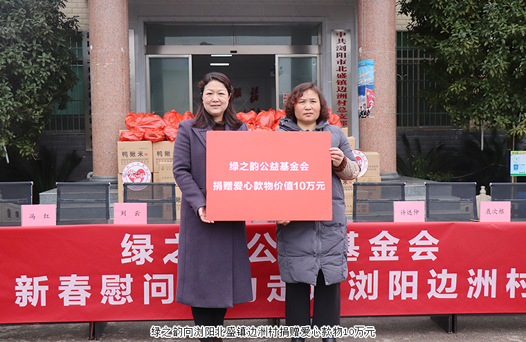 精準(zhǔn)扶貧送溫暖,春節(jié)慰問(wèn)暖人心。2021年2月3日,在新春佳節(jié)來(lái)臨之際,綠之韻公益基金會(huì)愛(ài)心慰問(wèn)活動(dòng)走進(jìn)瀏陽(yáng)北盛鎮(zhèn)邊洲村。這是繼綠之韻向?yàn)g陽(yáng)經(jīng)開(kāi)區(qū)工會(huì)聯(lián)合會(huì)捐贈(zèng)10萬(wàn)元款物用于新春慰問(wèn)困難群眾之后,再次捐贈(zèng)10萬(wàn)元款物幫扶邊洲村困難群眾度過(guò)一個(gè)安心溫暖的吉祥年。