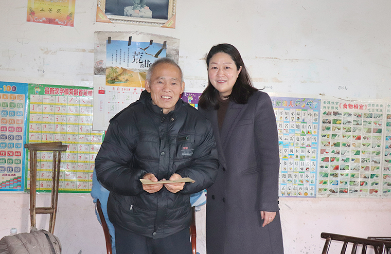 任惠老公患重病過(guò)世,她既要照顧家中七十八歲的爺爺,還要拉拔著兩個(gè)上小學(xué)的兒子,生活給予了十分的艱難,但年輕的任慧卻比想象中堅(jiān)強(qiáng)得多。慰問(wèn)組一行來(lái)到家中時(shí),她張羅著讓大家坐著喝茶,孩子們?cè)谂赃厽o(wú)憂無(wú)慮地玩耍。勞嘉理事長(zhǎng)為她送上慰問(wèn)金,鼓勵(lì)她:生活的困難打不倒每一個(gè)堅(jiān)強(qiáng)的母親,孩子們就是未來(lái)的希望!任惠的笑容就像她的藍(lán)色外套一樣,為灰色的生活添上了一抹亮色!