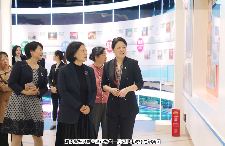 隨后,湖南省婦聯(lián)副主席盧妹香一行來(lái)到綠之韻國(guó)際會(huì)議中心多功能展廳實(shí)地走訪和參觀,勞嘉總裁就企業(yè)基本情況、生產(chǎn)經(jīng)營(yíng)、文化建設(shè)以及黨建公益等方面的工作情況做了詳細(xì)介紹。湖南省婦聯(lián)副主席盧妹香對(duì)綠之韻多年來(lái)在“關(guān)愛(ài)女性 崇德向善”方面的積極作為以及具有綠之韻品牌特色的“綠體紅心”黨建工作等給予了高度贊賞。她指出,綠之韻集團(tuán)廣泛開(kāi)展品牌公益活動(dòng),關(guān)注女性群體的積極作為傳遞了溫暖,為社會(huì)經(jīng)濟(jì)事業(yè)發(fā)展貢獻(xiàn)出巾幗力量,也在全社會(huì)掀起了一股關(guān)愛(ài)女性的良好風(fēng)氣。希望綠之韻在未來(lái)的工作中繼續(xù)堅(jiān)定初心,凝聚女性力量,切實(shí)發(fā)揮榜樣表率作用,為全面建設(shè)社會(huì)主義現(xiàn)代化國(guó)家新征程作出更多積極貢獻(xiàn)!