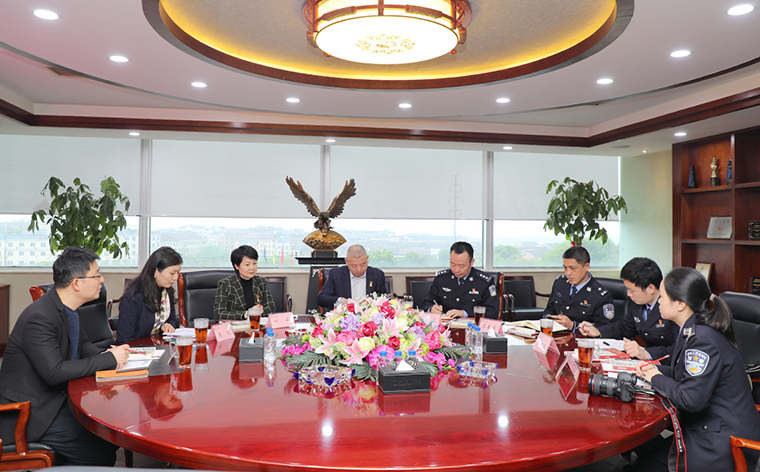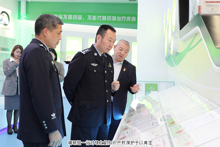 2021年4月13日,長沙市公安局知識產(chǎn)權(quán)犯罪偵查支隊支隊長鄭志帶領(lǐng)法制專干李春來,民警王陽生、周丹一行蒞臨綠之韻集團調(diào)研指導。綠之韻集團副總裁胡均安,黨委書記劉云,總裁助理蔣文全程陪同調(diào)研。