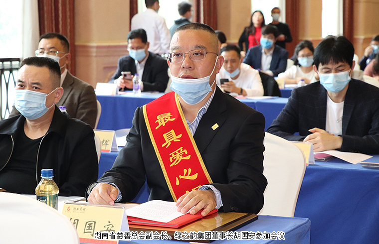 2021年5月19日,第四屆“湖南慈善獎”表彰大會在湖南賓館舉行。湖南省人民政府副省長朱忠明,省人民政府副秘書長彭翔,省人大社會建設(shè)委員會副主任委員卞鷹,省民政廳廳長曹忠平,湖南日報黨組書記、社長姜協(xié)軍,省人力資源社會保障廳黨組成員、副廳長焦華芳,省民政廳一級巡視員楊薇,省工商業(yè)聯(lián)合會二級巡視員劉建平等領(lǐng)導(dǎo)出席會議。湖南省慈善總會副會長、綠之韻集團董事長胡國安受邀參加會議。