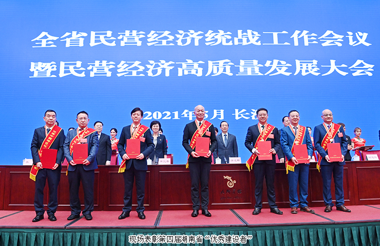 2021年5月28日下午,湖南省民營經(jīng)濟(jì)統(tǒng)戰(zhàn)工作會議暨民營經(jīng)濟(jì)高質(zhì)量發(fā)展大會在長沙召開。會議深入學(xué)習(xí)貫徹習(xí)近平總書記關(guān)于民營經(jīng)濟(jì)的重要講話指示精神,全面落實(shí)關(guān)于加強(qiáng)新時代民營經(jīng)濟(jì)統(tǒng)戰(zhàn)工作的意見和全國民營經(jīng)濟(jì)統(tǒng)戰(zhàn)工作會議精神,表彰第四屆湖南省“優(yōu)秀建設(shè)者”,交流民營經(jīng)濟(jì)統(tǒng)戰(zhàn)工作經(jīng)驗,為促進(jìn)民營經(jīng)濟(jì)高質(zhì)量發(fā)展、建設(shè)現(xiàn)代化新湖南凝心聚力。