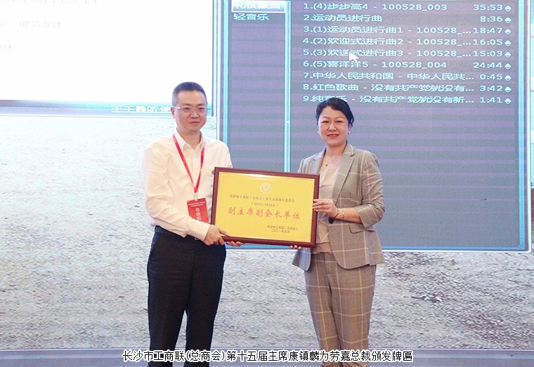 會(huì)議審議并通過(guò)了第十五次會(huì)員代表大會(huì)的決議,并宣布了新當(dāng)選的領(lǐng)導(dǎo)班子成員及常委名單。經(jīng)過(guò)表決選舉,康鎮(zhèn)麟當(dāng)選為長(zhǎng)沙市工商業(yè)聯(lián)合會(huì)(總商會(huì))第十五屆主席。綠之韻集團(tuán)董事、總裁勞嘉成功當(dāng)選長(zhǎng)沙市工商聯(lián)(總商會(huì))第十五屆副會(huì)長(zhǎng)。