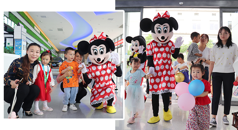 穿著米奇米妮服飾的“人偶娃娃”一出場就贏得了小朋友們的青睞,大家紛紛爭著搶著求合影,要抱抱,玩得不亦樂乎,場面瞬時(shí)熱鬧了起來。在父母的陪伴下,孩子們首先參觀了綠之韻國際會議中心展廳,在濃烈的企業(yè)文化氛圍中感受爸爸媽媽的工作環(huán)境。孩子們睜大著眼睛,左看看右瞧瞧,眼神里充滿了好奇,不斷向爸爸媽媽詢問了解。