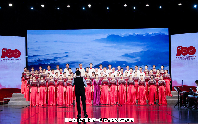 歌聲嘹亮,紅歌向黨。14支合唱隊伍用歌聲抒發(fā)愛黨愛國的真摯情感。與會人員在一首首熱情激昂的紅歌中聆聽黨史故事,回顧中國共產(chǎn)黨成立100年來波瀾壯闊的光輝歷程,在歌聲中感悟思想偉力、賡續(xù)精神血脈。