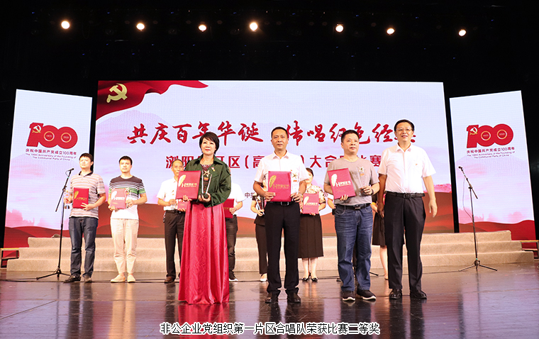 為隆重紀念中國共產(chǎn)黨成立100周年,回顧黨的光輝歷史,謳歌黨的豐功偉績,讓紅色基因、革命薪火代代相傳,2021年6月25日,瀏陽經(jīng)開區(qū)(高新區(qū))“共慶百年華誕 傳唱紅色經(jīng)典”大合唱比賽在金陽文化藝術(shù)中心舉行。瀏陽經(jīng)開區(qū)(高新區(qū))黨工委副書記、管委會主任談文昌,瀏陽市委黨史學(xué)習(xí)教育巡回指導(dǎo)組第一組組長龍春湘,瀏陽經(jīng)開區(qū)(高新區(qū))黨工委委員、管委會副主任何六生,黨工委委員、管委會副主任羅其勝,黨工委委員、紀工委書記、監(jiān)察工委主任肖賽男,黨工委委員、管委會副主任唐建國,瀏陽經(jīng)開區(qū)(高新區(qū))管委會調(diào)研員胡漢圣等領(lǐng)導(dǎo)出席活動。綠之韻及東風(fēng)藥業(yè)、永清環(huán)保、施比龍組成的瀏陽經(jīng)開區(qū)企業(yè)黨組織第一片區(qū)合唱隊參與比賽,并獲得合唱比賽二等獎。