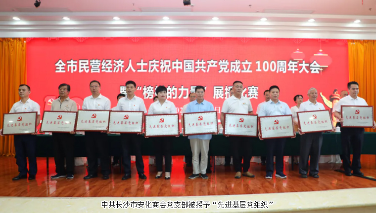 為進(jìn)一步激發(fā)商協(xié)會(huì)組織活力,激發(fā)民營(yíng)經(jīng)濟(jì)人士愛國(guó)熱情,引領(lǐng)民營(yíng)經(jīng)濟(jì)人士聽黨話、跟黨走,2021年6月29日,長(zhǎng)沙市民營(yíng)經(jīng)濟(jì)人士慶祝建黨100周年大會(huì)暨“榜樣的力量”展播比賽舉行。中共長(zhǎng)沙市委常委、統(tǒng)戰(zhàn)部部長(zhǎng)譚小平,統(tǒng)戰(zhàn)部副部長(zhǎng)、市工商聯(lián)黨組書記何惠風(fēng),長(zhǎng)沙市工商聯(lián)主席康鎮(zhèn)麟等領(lǐng)導(dǎo)出席會(huì)議。長(zhǎng)沙市安化商會(huì)會(huì)長(zhǎng)、綠之韻集團(tuán)董事長(zhǎng)胡國(guó)安受邀參加會(huì)議。