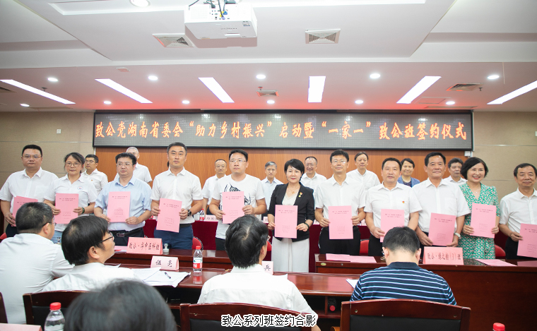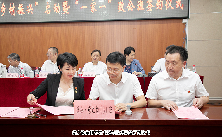 2021年7月26日,致公黨湖南省委會“助力鄉(xiāng)村振興”啟動暨“一家一”致公班簽約儀式在長沙舉行。湖南省政協(xié)副主席、致公黨湖南省委會主委胡旭晟;中共湖南省委統(tǒng)戰(zhàn)部副部長鄧煥生;致公黨湖南省委會專職副主委向佐誼,省委會副主委、長沙市人大副主任王國海,省委會副主委、省體育局局長羅雙全,省委會副主委、湖南師范大學副校長謝資清,省委會副主委劉丹軍,省委會秘書長、二級巡視員田宗之;中共安化縣委副書記、安化縣人民政府縣長肖義等領導出席。綠之韻集團黨委書記劉云參加會議。