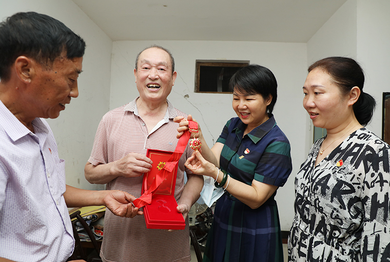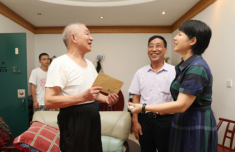為進(jìn)一步弘揚(yáng)擁軍優(yōu)屬的光榮傳統(tǒng),關(guān)愛退伍老兵,在“八一”建軍節(jié)來臨之際,綠之韻集團(tuán)黨委開展走訪慰問退伍老兵活動。綠之韻集團(tuán)黨委書記劉云、工會主席兼集團(tuán)辦公室行政總監(jiān)馮紅、黨委副書記許達(dá)仲帶領(lǐng)著就職于集團(tuán)的十余名退伍軍人前往瀏陽市洞陽鎮(zhèn),向當(dāng)?shù)赝宋槔媳蜕衔繂柦鸷蜐鉂獾墓?jié)日祝福,感謝他們?yōu)閲液腿嗣袼鞒龅呢暙I(xiàn)。
