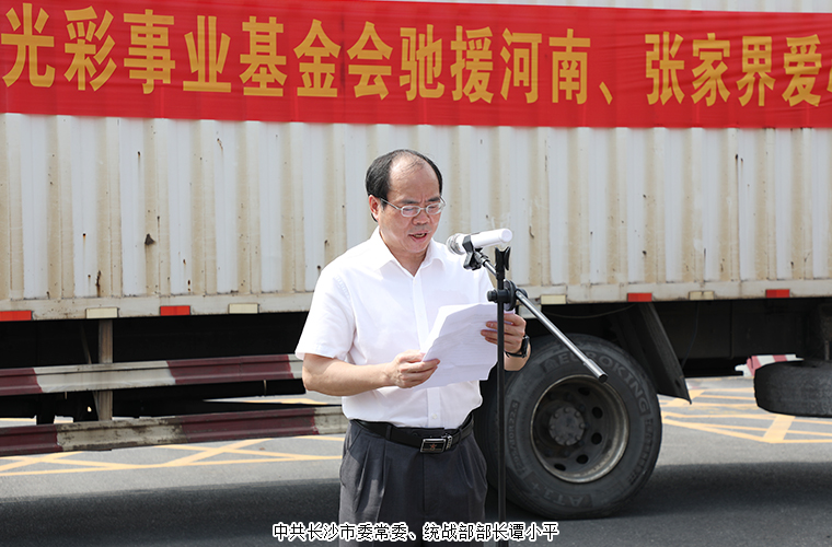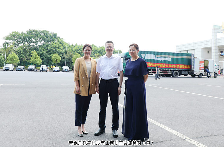 2021年8月6日,長(zhǎng)沙市工商業(yè)聯(lián)合會(huì)、長(zhǎng)沙市光彩事業(yè)基金會(huì)舉行馳援河南、張家界愛(ài)心捐贈(zèng)活動(dòng)。中共長(zhǎng)沙市委常委、統(tǒng)戰(zhàn)部部長(zhǎng)譚小平,長(zhǎng)沙市工商聯(lián)主席康鎮(zhèn)麟,中共長(zhǎng)沙市委統(tǒng)戰(zhàn)部副部長(zhǎng)、市工商聯(lián)黨組書記何惠風(fēng)等領(lǐng)導(dǎo)出席捐贈(zèng)儀式。長(zhǎng)沙市工商聯(lián)副會(huì)長(zhǎng)、綠之韻集團(tuán)董事總裁、湖南省綠之韻公益基金會(huì)理事長(zhǎng)勞嘉參加捐贈(zèng)活動(dòng)。