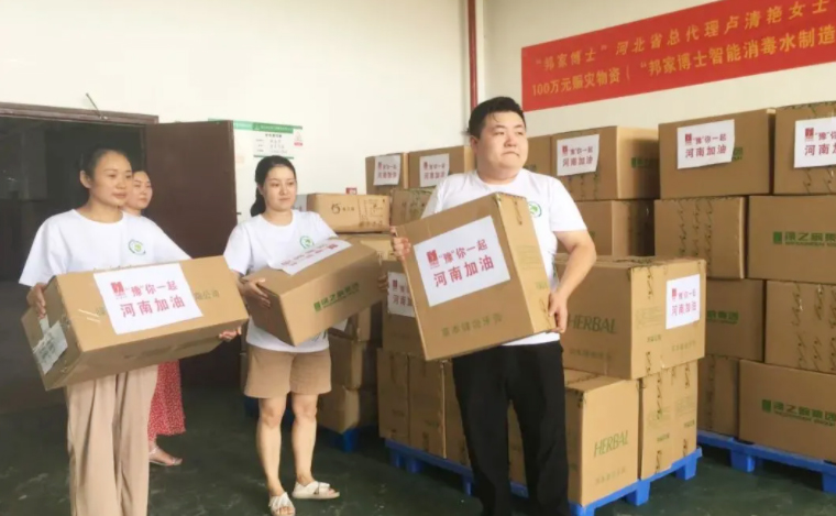 面對(duì)河南重大暴雨災(zāi)情,綠之韻低碳邦家博士河北區(qū)總代理盧清艷第一時(shí)間聯(lián)系品牌官方,調(diào)動(dòng)各方資源,向北京博愛(ài)婦女發(fā)展慈善基金會(huì)捐贈(zèng)了一批應(yīng)急物資支援河南,包括1000臺(tái)綠之韻低碳邦家博士智能消毒水制造機(jī)、2000支牙膏、1000條小方巾、1000件日用旅行套裝以及洗衣液、洗碗液等應(yīng)急生活物資,為受災(zāi)地區(qū)提供力所能及的幫助。