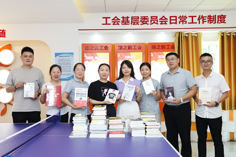2021年8月19日,綠之韻集團(tuán)舉行書籍分發(fā)活動,綠之韻集團(tuán)董事、總裁勞嘉向各部門員工分發(fā)學(xué)習(xí)書籍?;顒蝇F(xiàn)場,職工之家聚滿了前來領(lǐng)書的員工,大家整齊排隊,依次領(lǐng)取書籍。