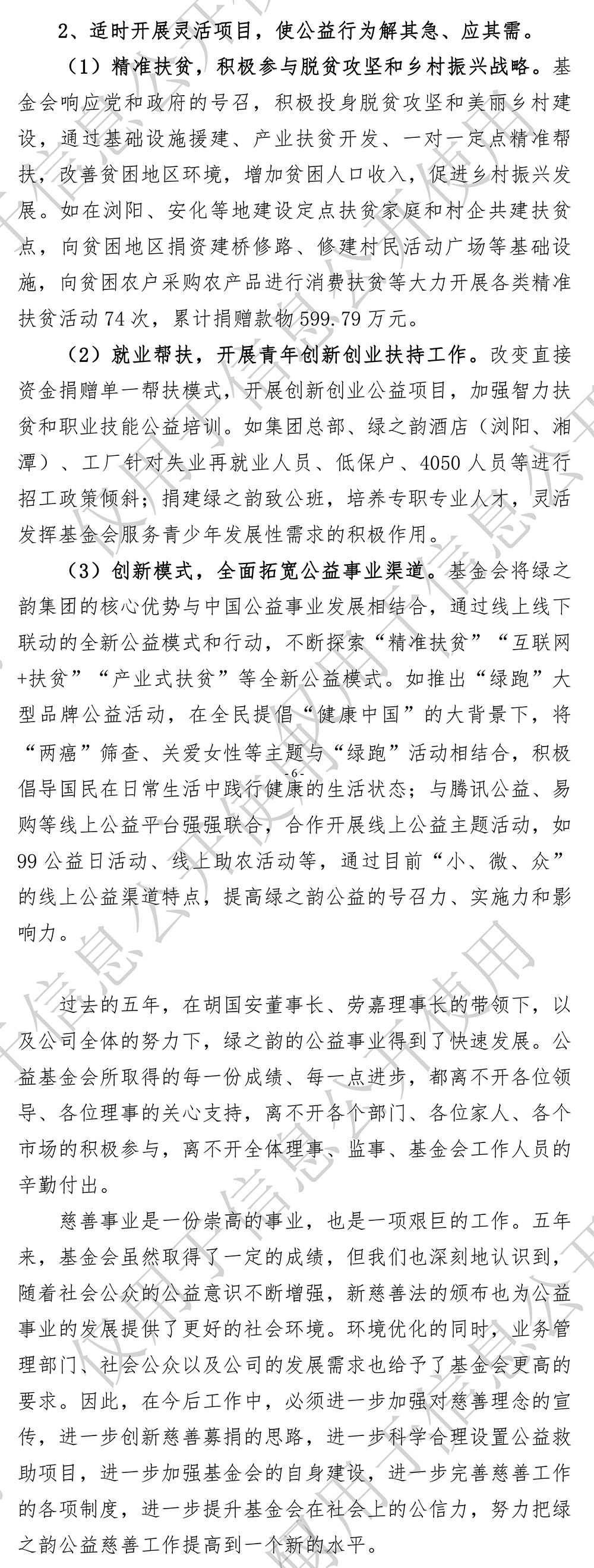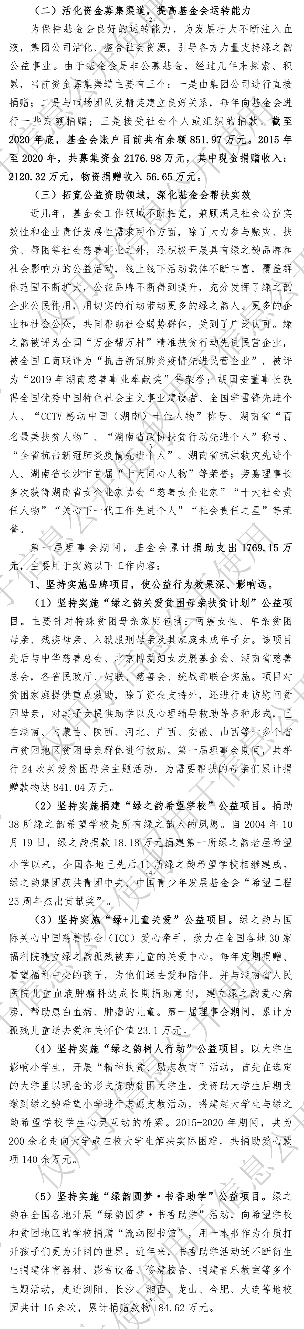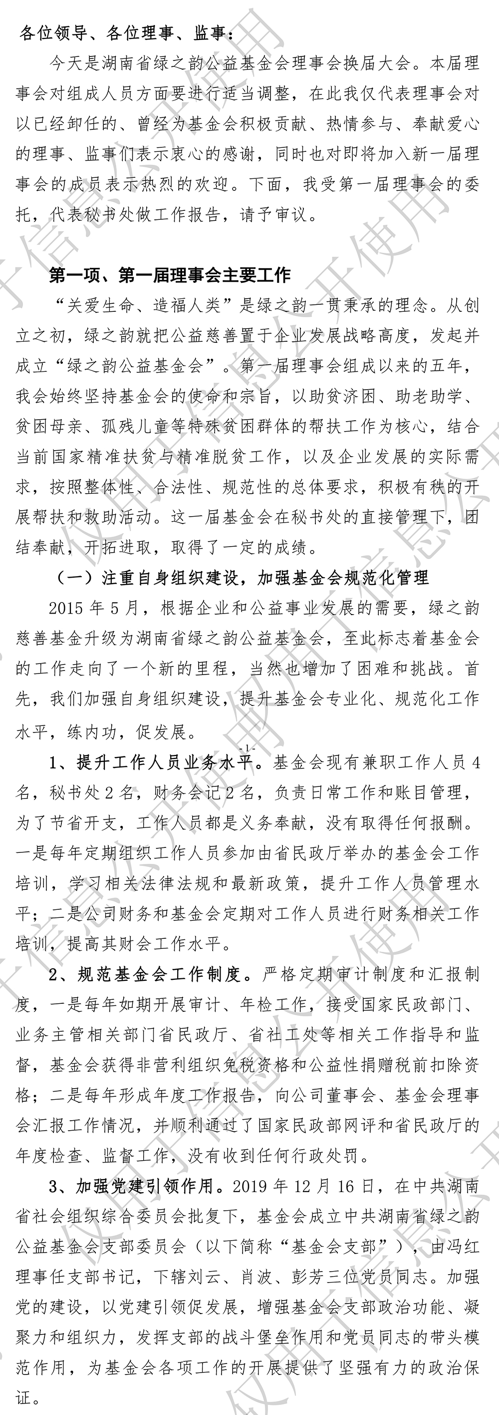 湖南省綠之韻公益基金會第一屆理事會工作報告(2015-2020年)