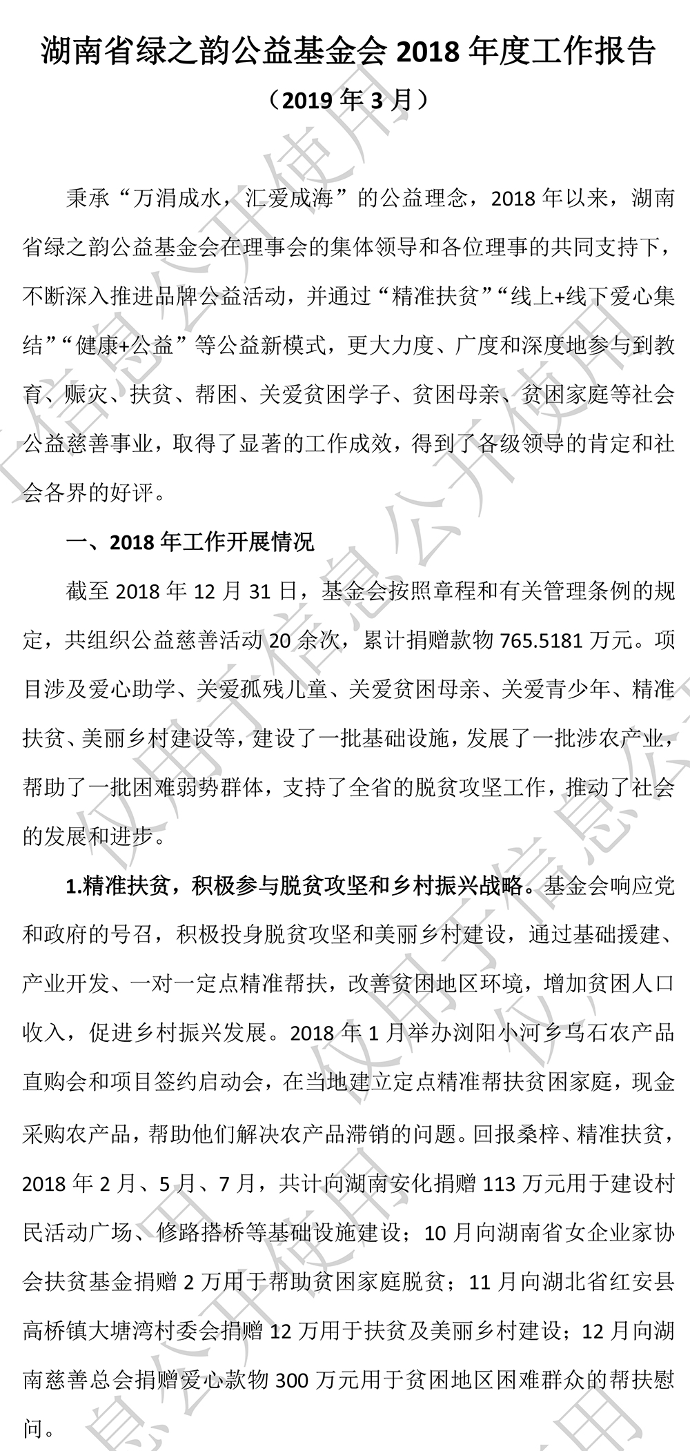 湖南省綠之韻公益基金會(huì)2018年度工作報(bào)告