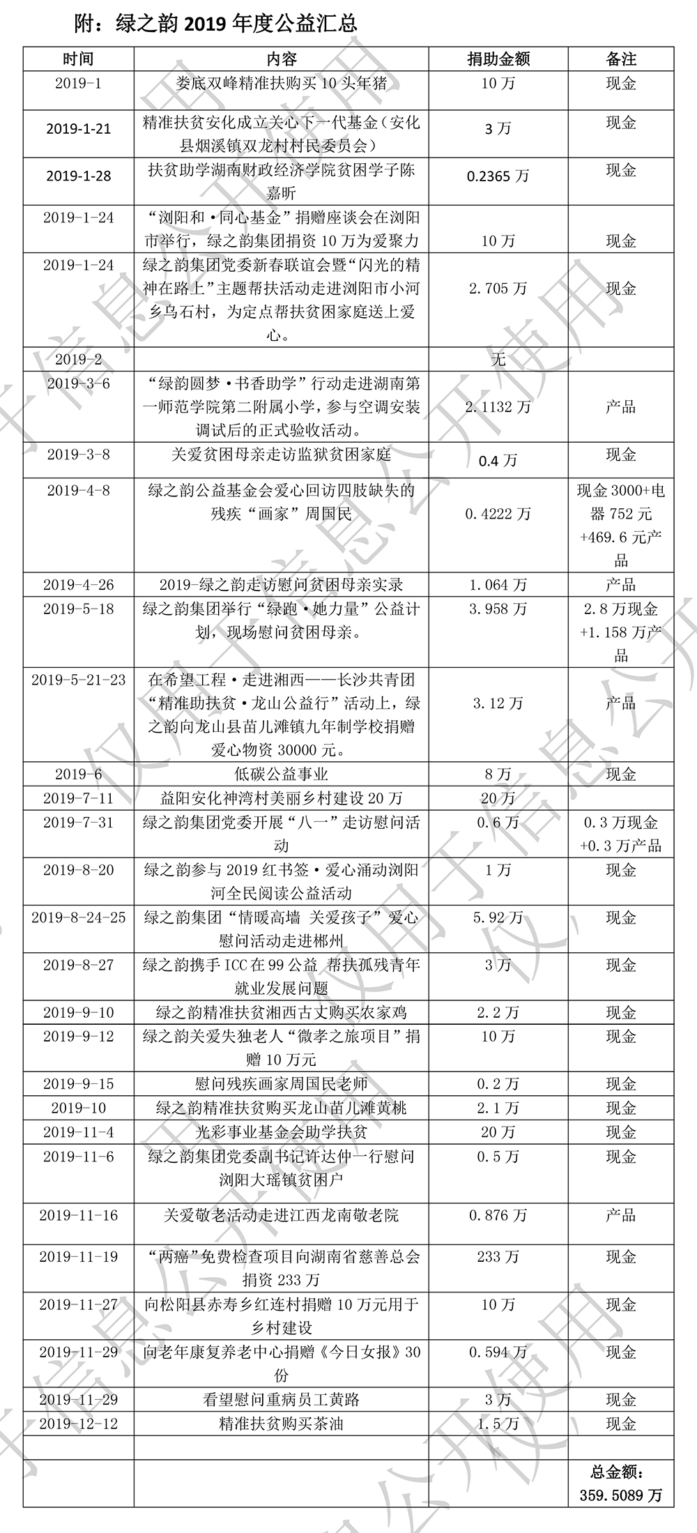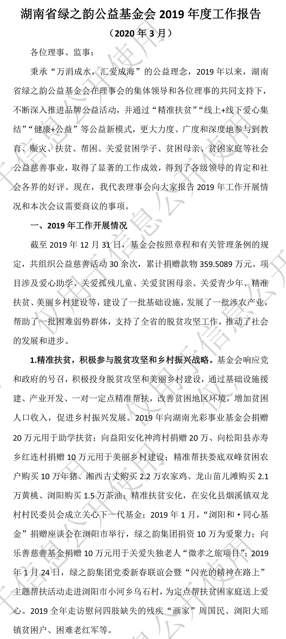 湖南省綠之韻公益基金會2019年度工作報告