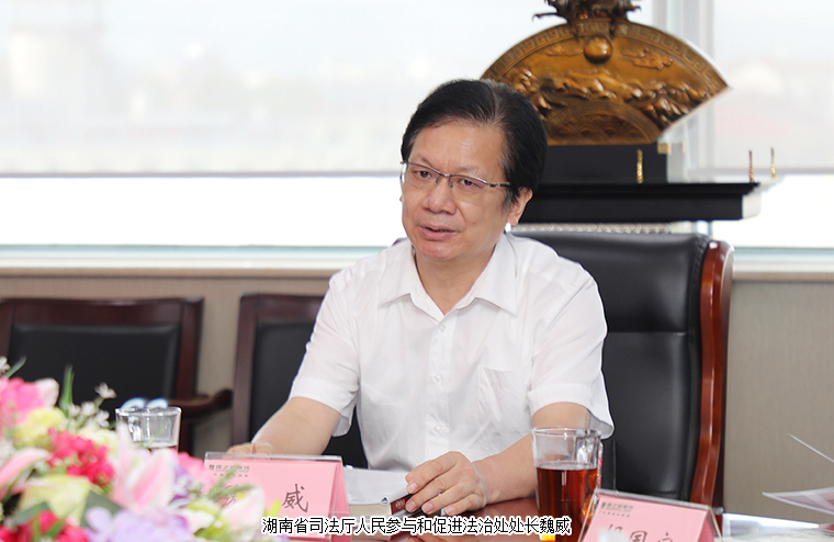 2021年9月10日,湖南省司法廳人民參與和促進(jìn)法治處處長(zhǎng)魏威、湘潭市司法局人民參與和促進(jìn)法治科科長(zhǎng)袁曉健蒞臨綠之韻集團(tuán)調(diào)研指導(dǎo)。綠之韻集團(tuán)董事長(zhǎng)胡國(guó)安、董事總裁勞嘉、黨委書(shū)記劉云、工會(huì)主席兼辦公室行政總監(jiān)馮紅、黨委副書(shū)記許達(dá)仲、人力資源總監(jiān)皮勁全程陪同。