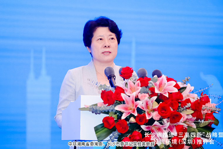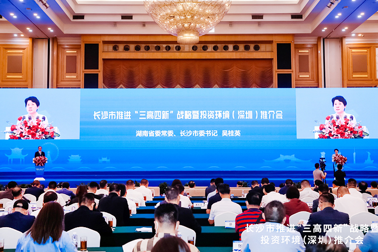 會議伊始,中共湖南省委常委、長沙市委書記吳桂英致辭。吳桂英在致辭中介紹,長沙是湖南省會、長江經(jīng)濟帶中心城市和“一帶一路”重要節(jié)點城市,歷史文化悠久、紅色底蘊深厚、自然風(fēng)光秀美、交通區(qū)位便捷、發(fā)展活力迸發(fā)。去年9月,習(xí)近平總書記親臨湖南、深入長沙考察,為我們擘畫了“三高四新”的宏偉藍圖。在黨中央、國務(wù)院和省委、省政府的堅強領(lǐng)導(dǎo)下,長沙牢記殷殷囑托、扛起重大使命責(zé)任,堅定不移推進“三高四新”戰(zhàn)略,全力當(dāng)好領(lǐng)頭雁、建設(shè)示范區(qū),矢志不渝沿著習(xí)近平總書記指引的方向闊步前行。吳桂英說,一年來,在“三高四新”指引下,我們奮力搶抓發(fā)展新機遇、奮力積蓄發(fā)展新動能、奮力開創(chuàng)發(fā)展新局面,著力在全球創(chuàng)特色、著力在全國爭先進、著力在區(qū)域作示范、著力在全省當(dāng)標(biāo)桿。隨著“雙循環(huán)”格局構(gòu)建、粵港澳大灣區(qū)建設(shè)等戰(zhàn)略拓展深化,深圳與長沙的聯(lián)系更加緊密,面臨的機遇更加寶貴,合作的空間更加廣闊。誠摯希望各位商界精英、業(yè)界翹楚,以前瞻視野洞察趨勢,以共贏姿態(tài)擁抱機遇,以戰(zhàn)略眼光布局未來,帶著更多的新項目、好項目、大項目,進駐長沙、投資長沙、建設(shè)長沙。熱忱歡迎大家多到長沙走一走、看一看,領(lǐng)略山水洲城的獨特風(fēng)貌,品味歷史名城的人文情懷,體驗快樂長沙的精彩魅力,感知廣闊美好的發(fā)展前景。我們將竭力做好接待服務(wù)工作,促進雙方密切交流、深化合作,共創(chuàng)更加美好的未來。