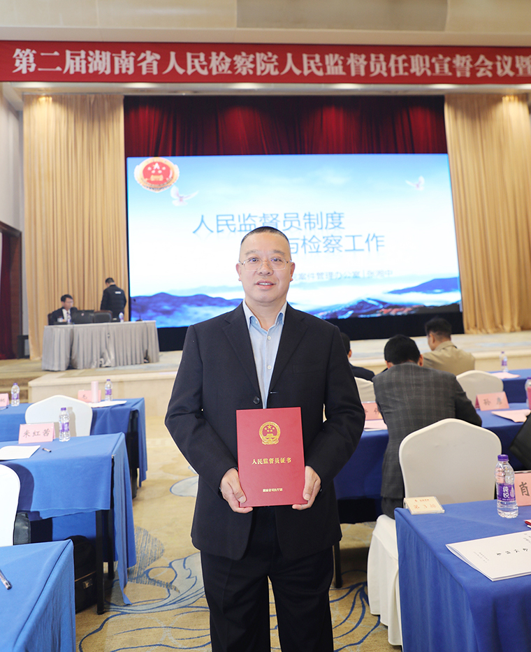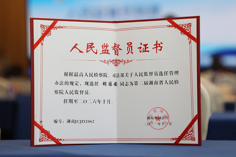 會(huì)上,湖南省司法廳黨組成員、政治部主任雷豐超宣讀了任命決定。綠之韻集團(tuán)董事長(zhǎng)胡國(guó)安等九十八名同志被任命為第二屆湖南省人民檢察院人民監(jiān)督員,任期自2021年11月至2026年10月。會(huì)議為第二屆湖南省人民檢察院人民監(jiān)督員頒發(fā)聘書(shū),全體人民監(jiān)督員進(jìn)行宣誓。