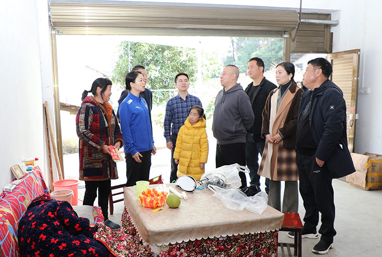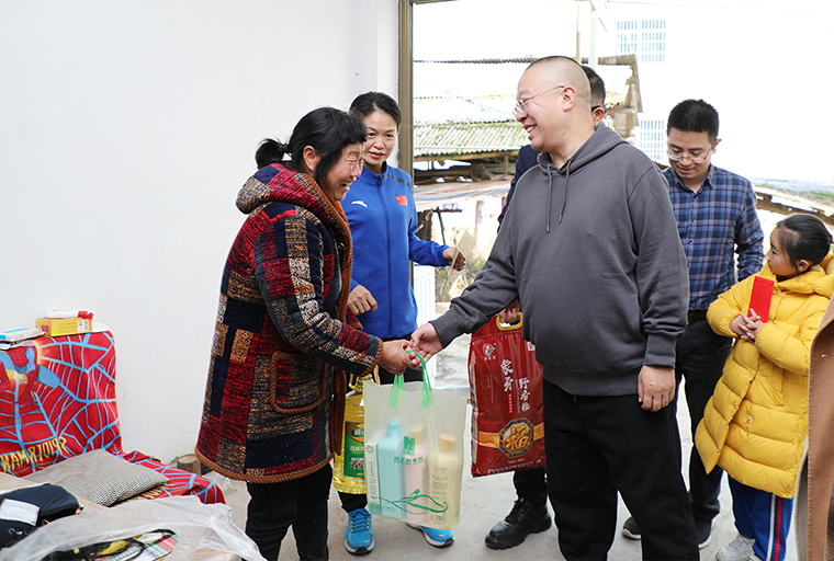 儀式過后,在胡家村村委干部的陪同下,致公黨湖南省委會副主委、湖南省體育局局長羅雙全,致公黨湖南省委會互聯網+專委會主任劉健與胡國安董事長一行走訪了脫貧戶家庭,為他們送去了慰問金、米糧和綠之韻健康產品。