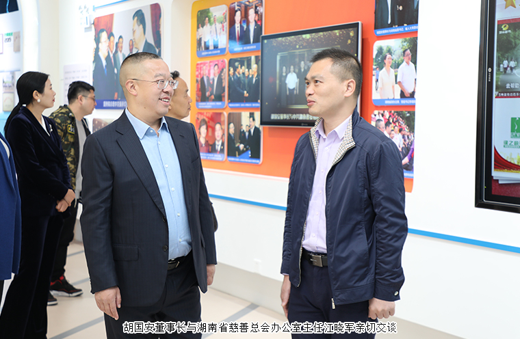 2021年12月7日,湖南省慈善總會辦公室主任江曉軍、辦公室副主任黃海林、籌募部部長宋顯達(dá)一行蒞臨綠之韻調(diào)研指導(dǎo)。湖南省慈善總會副會長、綠之韻集團(tuán)董事長胡國安,董事總裁、綠之韻公益基金會理事長勞嘉,黨委副書記許達(dá)仲,總裁助理、綠之韻公益基金會秘書長蔣文等領(lǐng)導(dǎo)全程陪同。