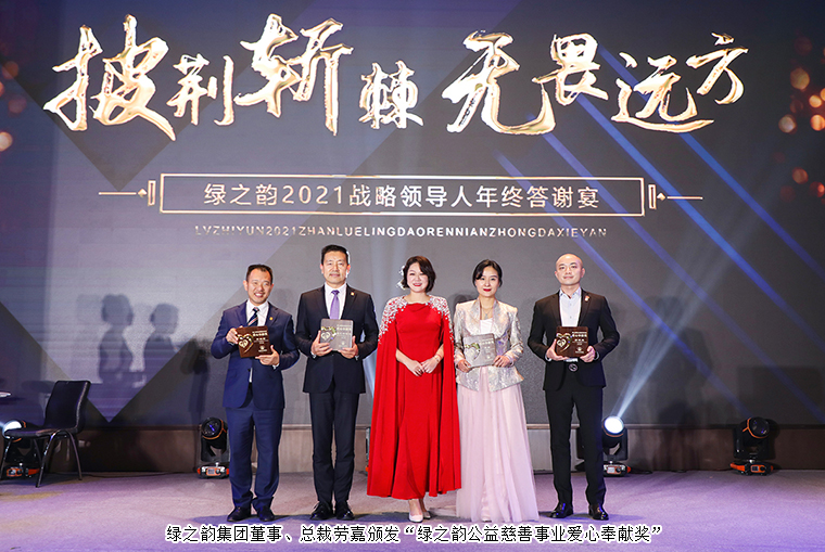 這一年,綠之韻繼續(xù)踐行著“關(guān)愛生命 造福人類”的理念,開展了一系列幫扶弱勢(shì)群體、愛心助學(xué)、鄉(xiāng)村振興公益品牌活動(dòng):橘子洲千人公益跑、馳援河南災(zāi)后重建、支援安化鄉(xiāng)村振興、致公·綠之韻(3)班開班……一場(chǎng)又一場(chǎng)的公益行動(dòng)點(diǎn)亮了綠之韻的公益版圖,愛已經(jīng)成為綠之韻人生命的習(xí)慣。晚宴現(xiàn)場(chǎng),綠之韻集團(tuán)董事、總裁,綠之韻公益基金會(huì)理事長(zhǎng)勞嘉向過(guò)去一年中積極投身公益慈善事業(yè)的市場(chǎng)優(yōu)秀代表綠之韻碧波庭、綠之韻低碳、綠之韻天泰、綠之韻匯誠(chéng)頒發(fā)“綠之韻公益慈善事業(yè)愛心奉獻(xiàn)獎(jiǎng)”。