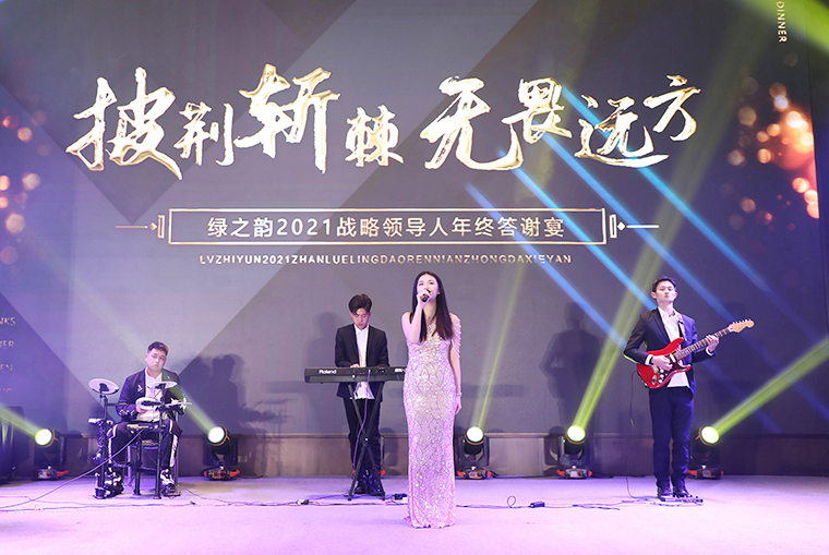 晚宴以“披荊斬棘·無(wú)畏遠(yuǎn)方”為主題。晚宴伊始,綠之韻集團(tuán)董事、總裁勞嘉致辭。她首先代表集團(tuán)公司對(duì)各位嘉賓、各位市場(chǎng)優(yōu)秀領(lǐng)導(dǎo)人的到來(lái)致以熱烈的歡迎和誠(chéng)摯的問(wèn)候!衷心感謝每一位新老朋友的努力和堅(jiān)持,讓綠之韻這個(gè)品牌,在這個(gè)特殊的年份,不僅克服了重重困難,而且還取得了良性增長(zhǎng)。即將邁入嶄新的2022,這將是我們鑒機(jī)識(shí)變、化危為贏、擼起袖子、彎道超車的一年。她堅(jiān)信:任何困難、任何險(xiǎn)阻、任何風(fēng)雨并不可怕,只要綠之韻人在一起,就會(huì)更有力量;只要我們披荊斬棘,無(wú)畏遠(yuǎn)方,心手相牽,明天就一定會(huì)更美好!