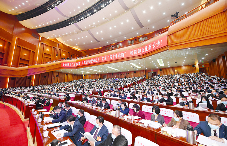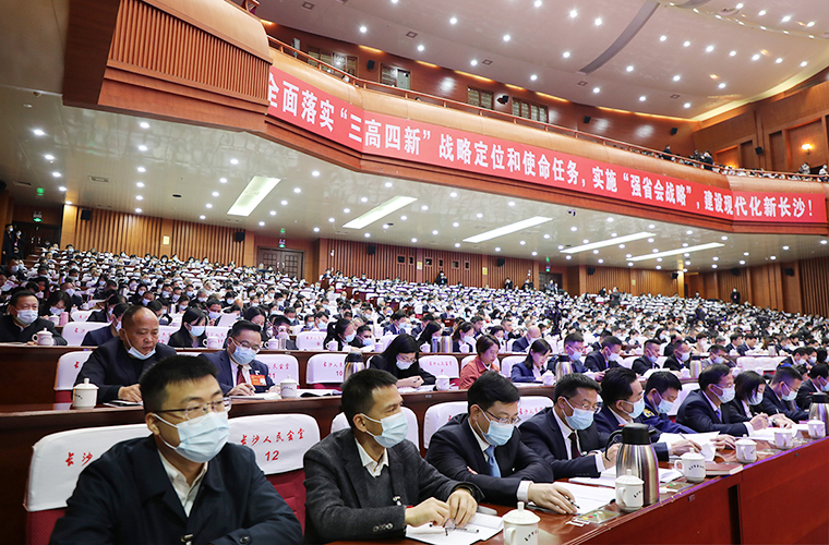 長沙市人大常委會(huì)黨組書記、主任謝衛(wèi)東主持會(huì)議并宣布大會(huì)開幕。會(huì)場全體起立,高唱國歌。在熱烈的掌聲中,長沙市人民政府市長作政府工作報(bào)告。報(bào)告共分四部分:一是本屆政府及2021年工作回顧;二是未來五年的發(fā)展目標(biāo)和重點(diǎn)任務(wù);三是2022年工作重點(diǎn);四是切實(shí)加強(qiáng)政府自身建設(shè)。2021年是黨和國家歷史上具有里程碑意義的一年,也是本屆政府的收官之年。我們深入貫徹習(xí)近平總書記對(duì)湖南重要講話重要指示批示精神,全面落實(shí)“三高四新”戰(zhàn)略定位和使命任務(wù),融入新發(fā)展格局,推進(jìn)高質(zhì)量發(fā)展,實(shí)現(xiàn)“十四五”良好開局。特別是省第十二次黨代會(huì)明確實(shí)施強(qiáng)省會(huì)戰(zhàn)略,為長沙發(fā)展注入強(qiáng)大動(dòng)力、賦予新的使命。全市上下要深入落實(shí)強(qiáng)省會(huì)戰(zhàn)略,以實(shí)干搶抓機(jī)遇,用擔(dān)當(dāng)迎接挑戰(zhàn),進(jìn)一步強(qiáng)化省會(huì)意識(shí)、彰顯省會(huì)作為,奮力在全國爭先進(jìn)、在區(qū)域作示范、在全省當(dāng)標(biāo)桿。