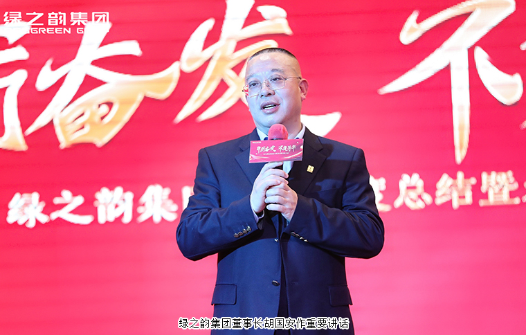 在全場最為熱烈的掌聲中,綠之韻集團董事長胡國安上臺講話。他首先向全體綠之韻家人致以誠摯的新年祝福,并對所有獲獎集體和個人予以高度評價。他表示,從大家身上,能看到不斷奮進中的綠之韻故事、綠之韻成績、綠之韻未來……從2021年走來,雖遇坎坷,但綠之韻精神讓我們化險為夷、堅韌生長。未來可期,迎難而上,2022年將面臨更加嚴峻的考驗,希望企業(yè)改革和創(chuàng)新管理制度、服務模式、人才培養(yǎng)機制,期待奮斗的綠之韻人勠力同心、奮楫爭先,以更大努力、更強自信、更穩(wěn)步伐全力推進“第四個五年規(guī)劃”和“大品牌、大健康、大金融”戰(zhàn)略,保障企業(yè)行穩(wěn)致遠,共同開創(chuàng)綠之韻更加美好的明天。