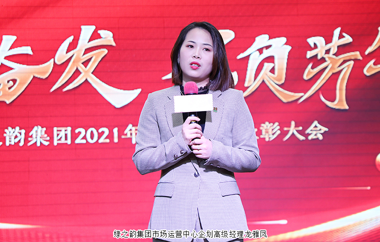 會上,綠之韻集團董事、總裁勞嘉講話。她首先代表集團向獲獎的先進集體和個人致以誠摯的祝福與感謝。她表示,2021年面對復雜的形勢,綠之韻人這一年干得不容易、過得很充實、走得很堅定,每一次努力都為綠之韻今天的事業(yè)發(fā)展增添新的光華。天下之事不盛則衰,天下之治不進則退。站在2022年新的起點,我們要牢固樹立“一切以市場為中心”的堅定信念,公司各板塊要擰成一個拳頭,加強服務意識與業(yè)務能力,全力推進市場發(fā)展,無懼風雨,攜手共進,在新征程上一起向未來。